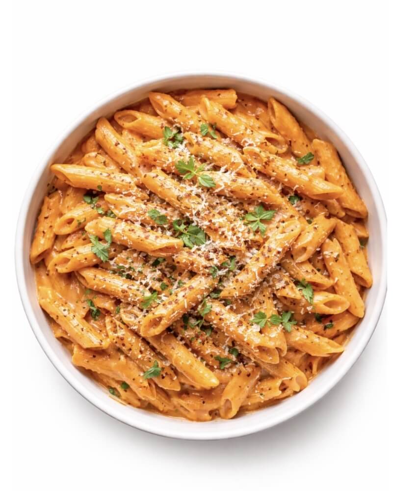 Penne Rigate with fennel sausage white wine and Nduja cream topped with basil and Parmesan cheese