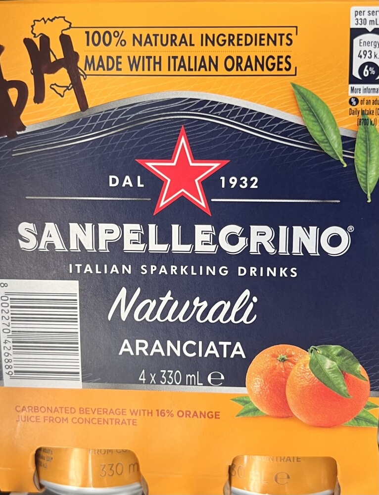 4* 330 ml SANPELLEGRINO Italian Sparkling Drinks Natural Aranciata