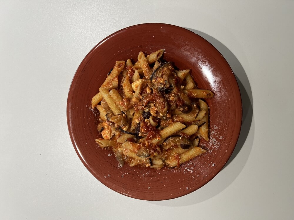 Penne in a Napoletana sauce with ricotta, Parmesan, olives, garlic and basil