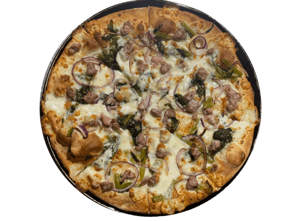 Truffled Potato, Italian Sausage, Caramelised Onion, Mozzarella, Spinach