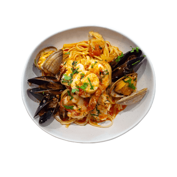 Prawns, Squid, Scallops, Salmon & Mussels In Red Sauce