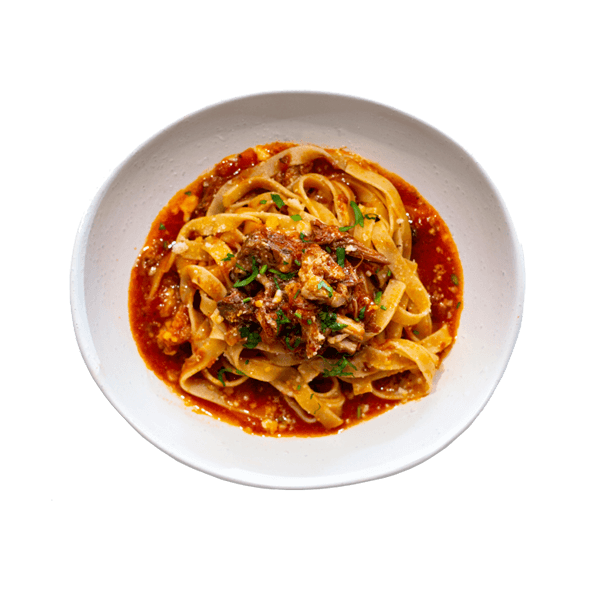 Slow Cooked Lamb Sauce, topped with Parmesan