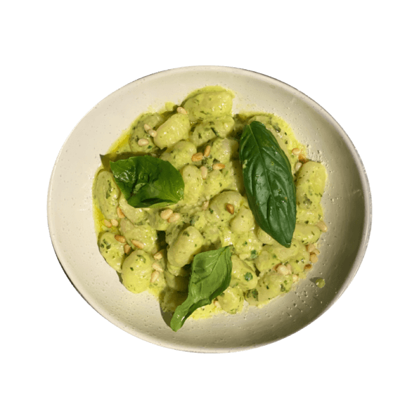 Pesto sauce of basil, pine nuts, garlic, Parmesan and cream