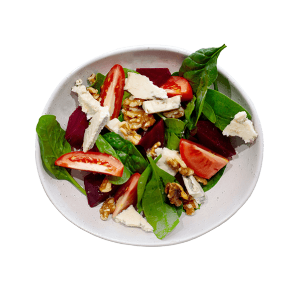 Beetroot, Walnut, feta, mixed leaf and Tomato with lemon honey mustard dressing