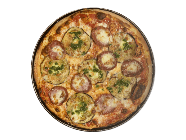 Eggplant, bocconcini, Parmesan, pesto, mozzarella Italian salami