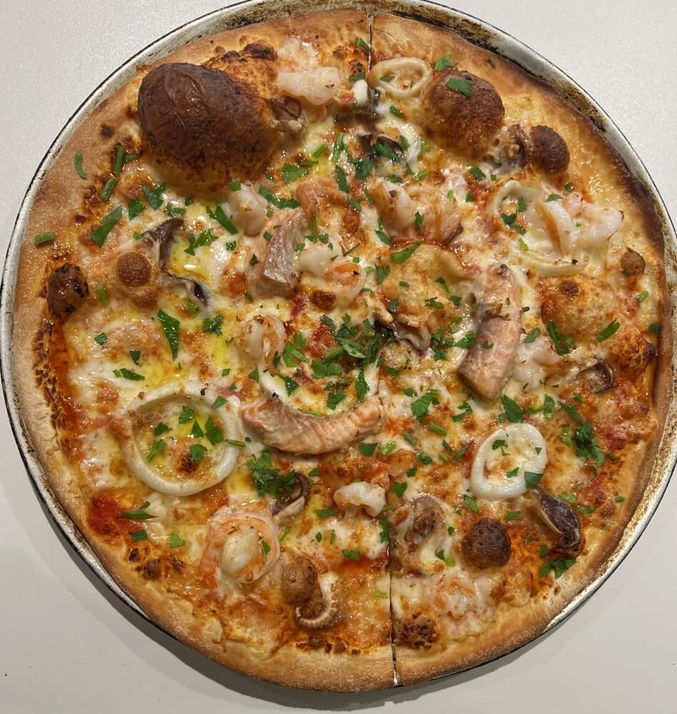 Prawn, salmon, octopus, squid, parsley and mozzarella