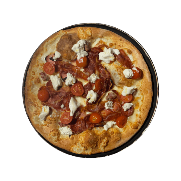 Crispy prosciutto, mozzarella, cherry tomatoes, salsa verde, burrata cheese